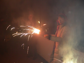 今天周日还是元宵. 晚上班里有大概二三十个人聚在一起玩. 本来计划是想在户外煮元宵/汤圆, 烧烟火, 天气关系, 还是移师室内了. 烟火在走道里面给烧了, 狭小的空间里花火灿烂 (Photo by 昌明gg), 只是我们都被烟雾呛得不行.