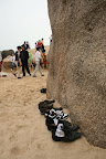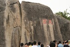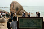 再说天涯海角. 原来我对它有非常美好的想象… 浩渺南海上乘一轻帆翩然而至, 夕阳西下之时远眺惊涛拍岸之处白鸥点点, 巨石一大坨矗立天地之间, 上书 “天涯” “海角” 四个金字, 熠熠生辉… 现实则是残酷的, 巨石下堆满了来自祖国各地忙于拍照和攀爬石头的游客, 还有揽客出海的机动船若干穿梭其间. 没有白鸥, 惊涛也拍不到巨石上, 只有拥挤和喧嚣. 为了证明我来过, 我把这几块石头拍下来了 (貌似没有看到 “海角”, 我给忘了, 囧)