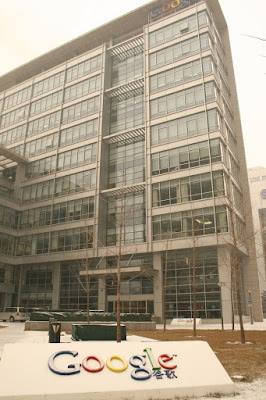昨天还在椰林树影的地方呢, 今天就要冒雪上班了. 早上睡了个懒觉, 起来时已过十点, 雪正大, 磨蹭半天, 到单位的时候已经十一点一刻了. 门口的彩色 Logo 上积了些雪, 甚为好看.