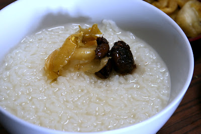 白粥咸菜 2008 年 2 月 26 日 过年回家找奶奶讨了些咸菜: 一瓶贡菜, 一罐油橄榄, 皆为自行腌制, 好吃买不到. 所以最近比较热爱在家里煮白粥, 吃咸菜. 喜欢吃的还有沙茶拌粿条, 从家里也弄了两瓶沙茶酱回来, 就是粿条北京不好买, 出差回来以后有空研究一下. 明天今天晚上过去成都一趟, 黑猫已有人照顾. P.S. 有没有老乡告诉我 (米果) 怎么打? Update: Thanks Anonymous! 发推