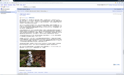 Google 的大部分产品界面都是自适应浏览器宽度的, 产品不同, 具体做法也会有不同. 对于 application 性质的产品, 界面框架一般都是自适应的, 但为了保证里面文本的可读性, 往往会对文本内容区域限制一个最大宽度, 像 Google Reader 这样: