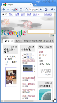 如果浏览器的窗口特别大或者特别小呢? 我觉得可以不为这些极端情况做优化, 但底线是不要让人觉得出错了, 也算是给网站界面预留退路的一种吧. 一般来说, 我会给界面指定个最大宽度值和最小宽度值, 这样宽度的变化不至于失控. 像 iGoogle 在小屏幕下乱成这样, 不应该: