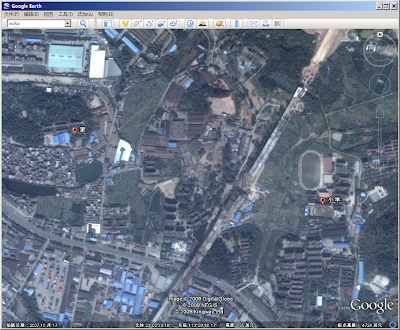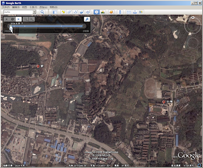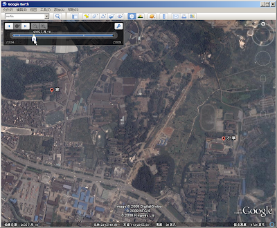 过年的时候我我在家里装了台新电脑, 也给装上了 Google Earth (当时只有繁体中文版). 我爸第一次使用这个玩意儿, 在他的指导下, 我们一起定位到了我们上个世纪八九十年代住过的这个地方——