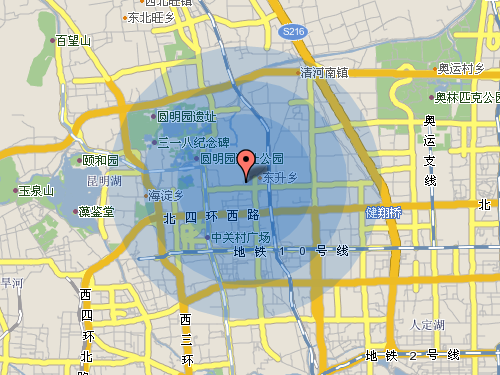1) 没有必要离办公室太近, 直线距离 4 公里以内都可以接受, 3 公里左右最佳. 为了让读者朋友有一个直观认识, 我特意在祖国的首都上画了三个圈, 分别表示以 2 公里, 3 公里和 4 公里为半径的圈. 看, 直线距离 4 公里是可以到很遥远的地方, 请大家开阔思路.